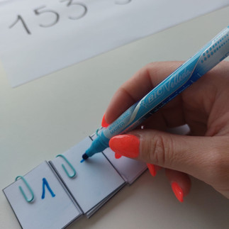 L'idée est très simple: lorsque la frise est pliée en accordéon, l'enfant peut noter le nombre qu'il souhaite décomposer comme ceci: